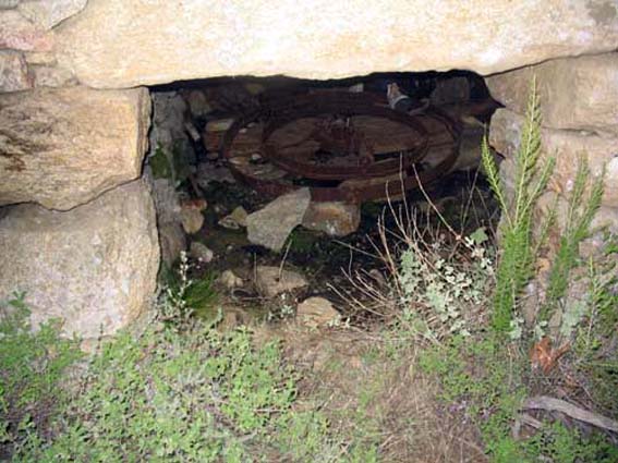 1) από τη βάση που στήριζε τον φούρνο, και που ήταν ένα χτιστό κατασκεύασμα με υποδοχές, για αποθήκευση ξύλων ή εργαλείων.