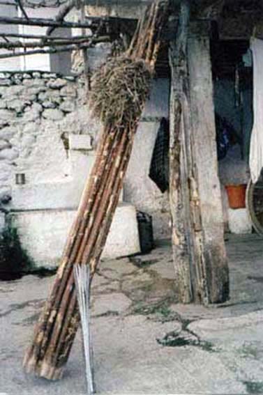 Έτσι άρχιζε ο θέρος με το δρεπάνι ένα (σιδερένιο εργαλείο σχήματος μισοφέγγαρου με ξύλινη λαβή) στο ένα χέρι, με την “παλαμαριά” στο άλλο, για να μαζεύουν μεγαλύτερες χεροβολιές και την αφόρητη ζέστη του καλοκαιριού. Τις χεροβολιές που θέριζαν τις άφηναν κατάχαμα, τις συγκέντρωναν σε “δρομιά” και όταν τελείωνε ο όργος άρχιζε η δεματοποίησή τους. Τα δρομιά τα συγκέντρωναν και έδεναν το δεμάτι με τα “διματ’κά” που τα κατασκεύαζαν προηγουμένως με σικαλιά βρεγμένη και στριμμένη ταυτόχρονα για να έχουν αντοχή και ελαστικότητα. Μετά θέριζαν και τον δεύτερο όργο, τον τρίτο, έδεναν πάλι τα δρομιά σε δεμάτια, μέχρι που τελείωνε ολόκληρο το χωράφι.
