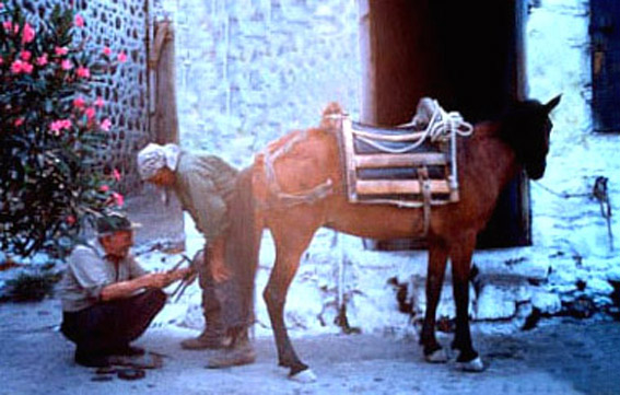 Εκείνη βγάζει τη ζώνη της ή ένα λουρί ή σχοινί και πρώτα σχηματίζει μ’ αυτό διάφορα σχήματα, π.χ. ένα αχλάδι, ένα μήλο, ένα καλάθι κτλ. Τα άλλα πρέπει να μαντέψουν τι παριστάνει. Όποιο το βρει, του δίνει η μάνα το λουρί και τότε εκείνο έχει το δικαίωμα να σηκωθεί και να κυνηγήσει τ’ άλλα παιδιά. Η μάνα μένει στη θέση της και κάθε τόσο φωνάζει: «Τρεις και το λουρί της μάνας! ». Εκείνος που κρατεί το λουρί, συνεχίζει το κυνήγι του κι αν κτυπήσει κανένα παιδί, τότε εκείνο βγαίνει απ’ το παιχνίδι. Αν όμως η μάνα φωνάξει: «Τρεις και το λουρί της μάνας! », τότε αυτός που κυνηγάει, πρέπει αμέσως να γυρίσει πίσω και να παραδώσει το λουρί στη μάνα, αλλιώς τα άλλα παιδιά έχουν το δικαίωμα να τον πάρουν στο κυνήγι και να του πάρουν το λουρί και να αρχίσουν μ’ αυτό να τον χτυπούν.